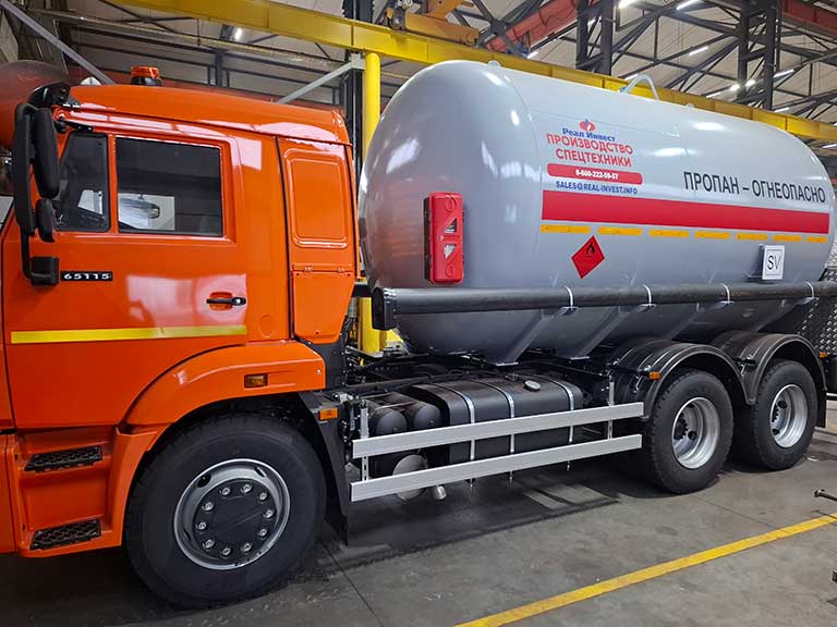 Автомобильный газовоз объёмом 20 м³ на шасси КАМАЗ 65115 — представитель линейки автоцистерн, выпускаемых в России компанией ЗАО «Реал-Инвест».
