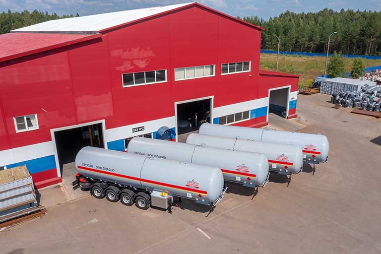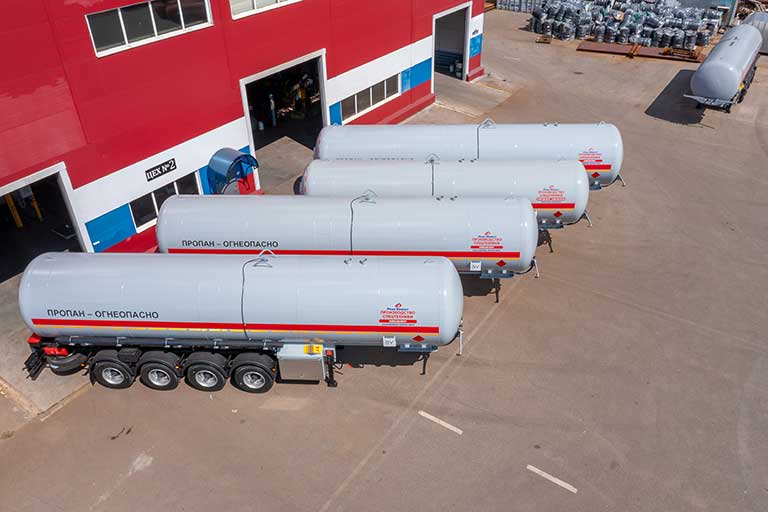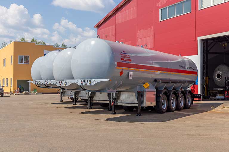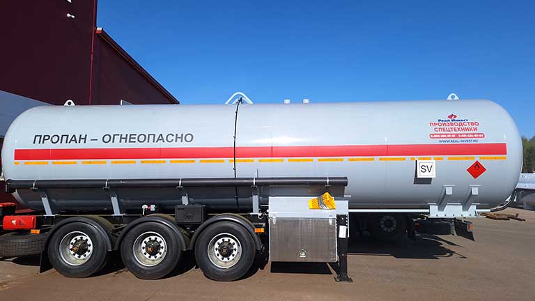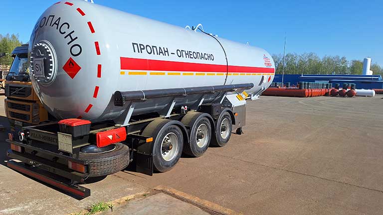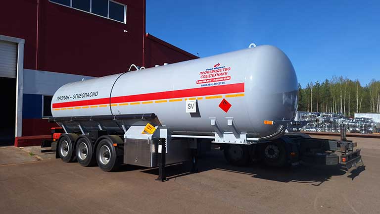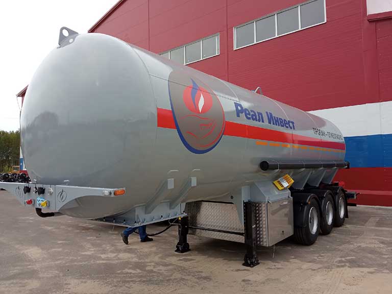 Полуприцеп-цистерна объёмом 45 м³ предназначена для перевозки сжиженных углеводородных газов (СУГ). Современная конструкция обеспечивает надёжность, безопасность и удобство эксплуатации при интенсивной работе.